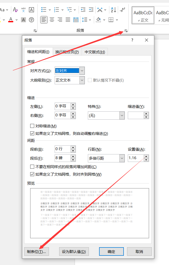设置完成后,点击“设置”按钮,即可应用制表位。