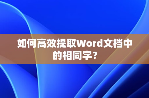 答案:在Word中,可以使用“查找和替换”功能或“高级查找”功能,将重复的字复制到新的文档中,即可批量提取文档中相同的字。