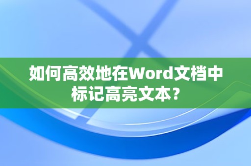 在Word文档中,标记高亮文本是一种简单而实用的编辑技巧,通过本文的介绍,相信您已经掌握了在Word中标记高亮文本的方法和技巧,在实际操作中,可以根据自己的需求灵活运用,提高文档编辑效率。