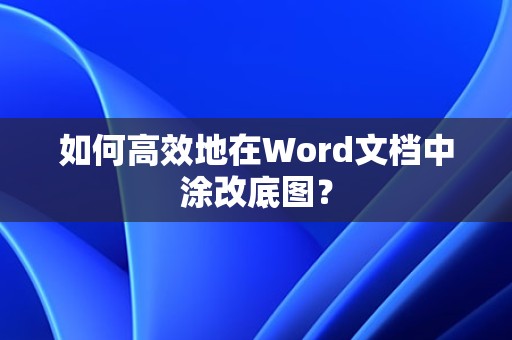 通过以上步骤和技巧,相信您已经掌握了在Word文档中涂改底图的方法,在今后的工作中,运用这些技巧,可以让您的文档更加美观、富有创意。