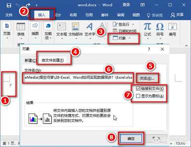 首先打开word,将光标定位到需要插入Excel表格的地方,点击“插入”——“对象”——“由文件创建”——“浏览”——找到需要的Excel表格——选中“链接到文件”——“确定”。