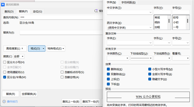 成批改下划线颜色:用替换功能时能同时设字体颜色,方便给合同重点做标记。