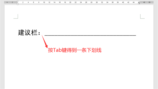 4.返回文档,在”建议栏:”之后按键盘上的Tab键,可快速输入一条下划线。