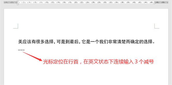 将光标定位在要输入下划线文本的下一行行首,切换到英文输入法状态,连续按3次键盘上的减号”-”键,按回车键确认,就能快速得到一整行下划线。