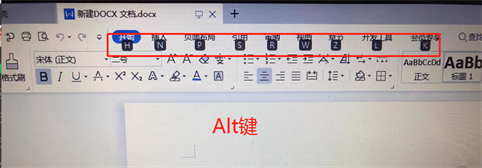 一、首先打开Word软件,按【Alt】键,此时窗口中的菜单栏中就会出现英文字母提示;