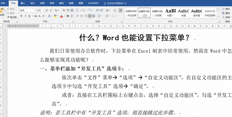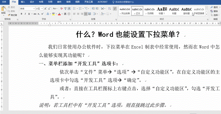 说明:若工具栏中有“开发工具”选项,则直接跳过此步骤。