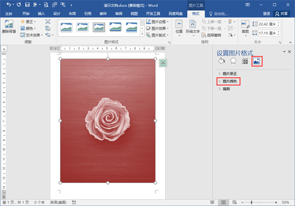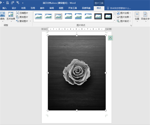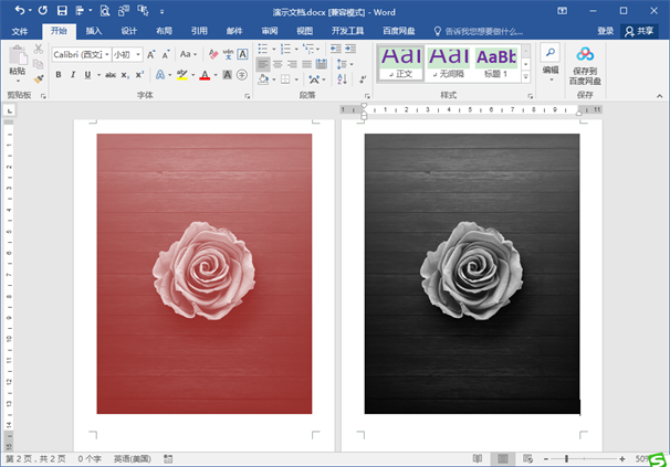 将下图文档中第1页(截图左侧)的彩色图片调整为第2页(截图右侧)的黑白图片。