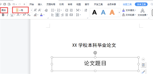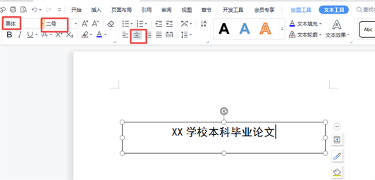 ②:在文本框中输入文字,这里输入【XX学校本科毕业论文】,输好后设置文字格式,这里设置的是黑体、二号以及居中