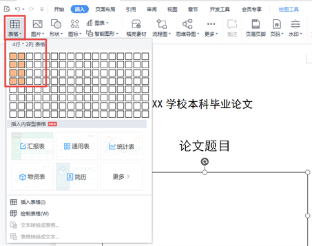 ⑤:再插入一个横向的文本框,然后再点击【插入】——【表格】,在这个文本框中插入一个4行2列的表格,并调整表格的高和宽。