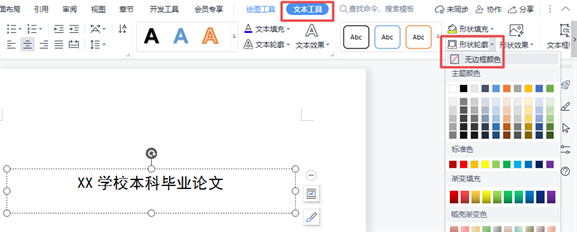 ③:点击菜单栏中【文本工具】——【形状轮廓】——【颜色无边框】,这样就把文本框的线条隐藏了。