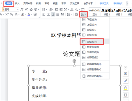 ⑧:点击【开始】——【边框】——【无框线】