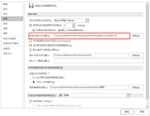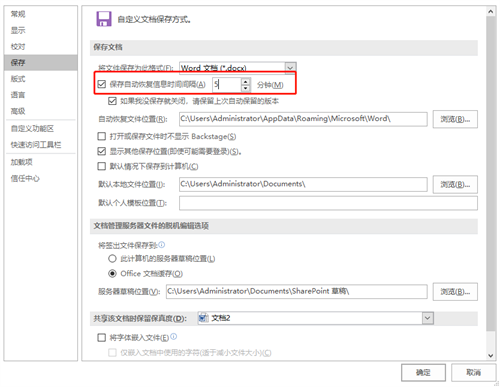 我们可以在【保存】设置界面里面看到,显示的保存时间是5分钟(当然这是小易自己设置的5分钟,怂怂的小易啊),也就是说Word不管你是否保存,它会每隔5分钟自动为你保存一次文档。当然你也可以将保存时间设置更短一些!