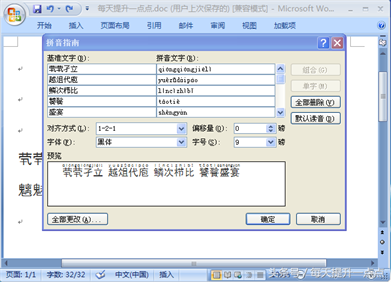 2、弹出拼音指南对话框,直接确定即可。