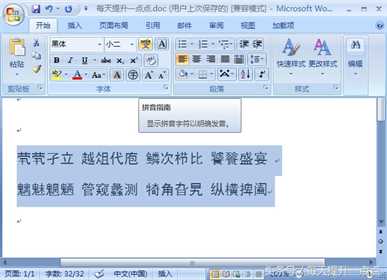 最佳答案操作步骤1、选中要汉字标音的文本,在“开始”标签下,选择“拼音指南”按钮。拼音指南按钮2、弹出拼音指南对话框,直接确定即可。拼音指南对话框3、下面是最终效果图。最终效果图提示说明:1、office安装时没有安装该组件。解决方法,重新安装并选中该组件......
