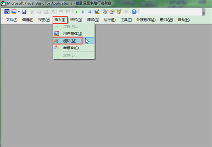 2.在弹出的VBA编辑器窗口中执行“插入”-“模块”命令,此时在窗口中央会弹出一个代码编辑窗口。