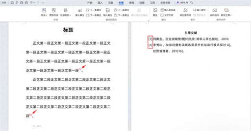 - 第8步:按照相同的方法,在正文其他需要的位置插入对应的引用文献编号。