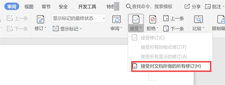 无标记但是修改的内容还在,浏览过程一一确定修改意见是否接受。我一般是看完直接选择接受对文档所做的所有修订。也可以根据旁边的上一条或者下一条慢慢审阅。