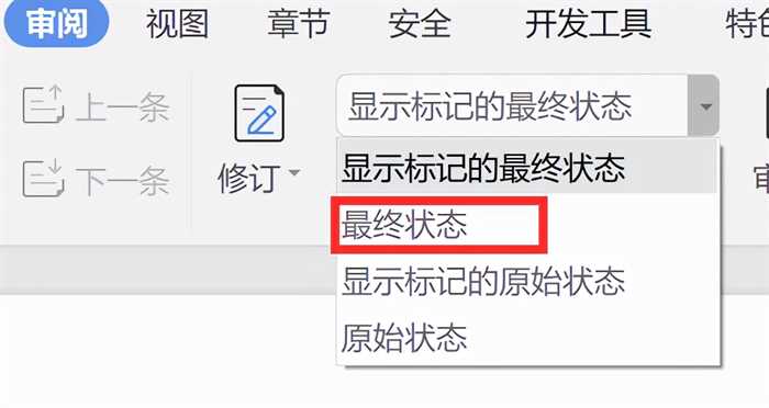 整个修订过程中是可以看到所有修改记录的,如果想看修改后的文档。则选择为显示标记的最终状态。修改完记得保存为最终状态哦~