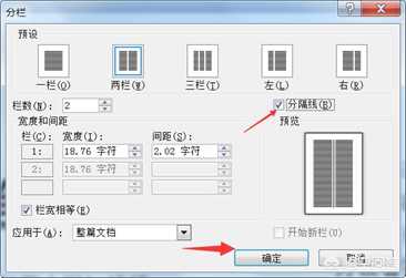 会出现分栏窗口,勾选分割线并点击确定,如图所示: