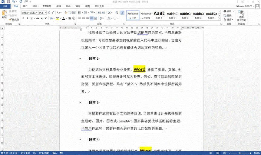 直接打开查找窗格,在格式中选择“突出显示”,这样就将突出显示的部分全部选中,然后在开始菜单下的“以不同颜色突出显示文本”点选需要更改的颜色,这样就轻松搞定了。
