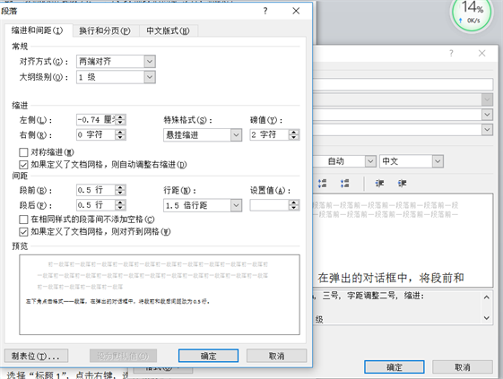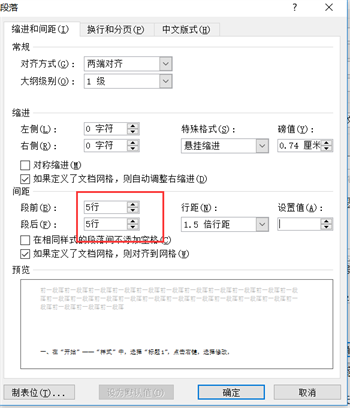 这时我们发现,一级标题的段落前后间距太大,不美观,将全部一级标题段后前后间距修改为0.5倍行距。