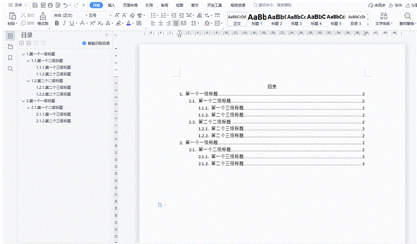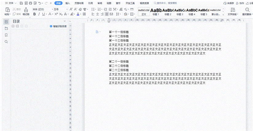 通过左侧可以看到设置后标题层级关系(依次从一级到二级再到三级……层层折叠)。