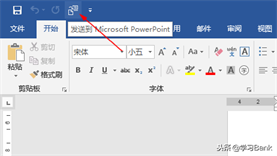 3、这样,返回到Word界面,在第一行左侧的快速访问工具栏中添加上了“发送到Microsoft PowerPoint”按钮。