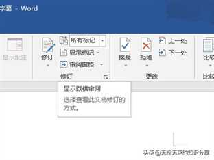 其中由修订、显示以供审阅、显示标记和审阅窗格组成。