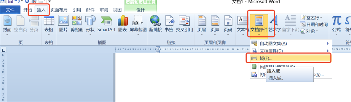 接着我们插入域,如图所示: