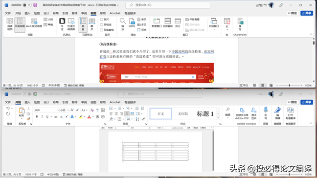 如果我们选择“并排查看”并且“同步滚动”也为选择状态,可以实现两个不同文档的左右分屏,并且滚动浏览任一文档时,另一文档也会随之滚动,是不是非常方便?