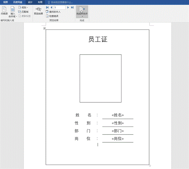 2、邮件合并插入员工资料