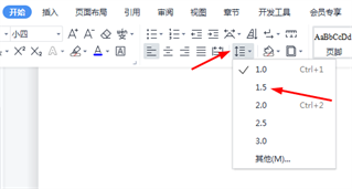 段落行距1.5,这个应该对大家来说都不复杂,同样全选表格→开始菜单→行距→1.5,就完成了对表格中文字行距的设置。