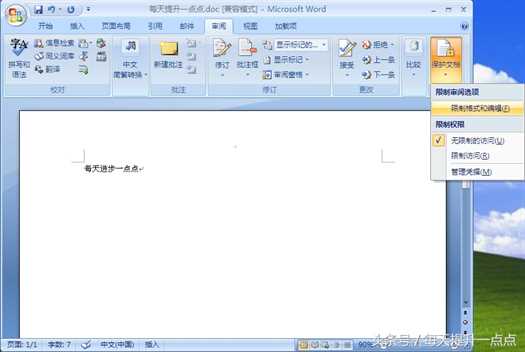 2、在“审阅”标签下,点击“保护文档”,再选中“限制格式和编辑”。