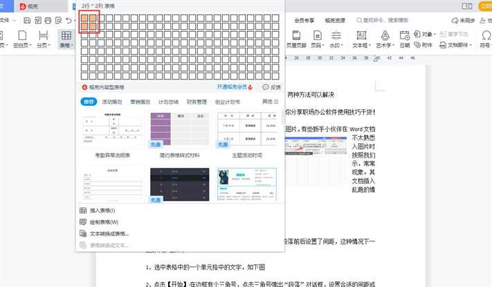 1、首先,以在Word文档中插入4张图片,分上下两行排列为例。我们通过点击【插入】-【表格】,然后绘制两行两列表格,如下图