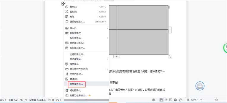 3、为了能够固定表格的大小,不因插入图片的尺寸而改变,这时我们可以选择表格,然后点击右键,选择【表格属性】,如下图