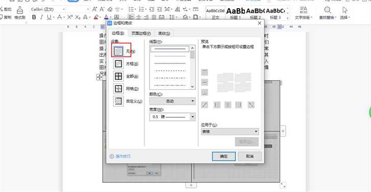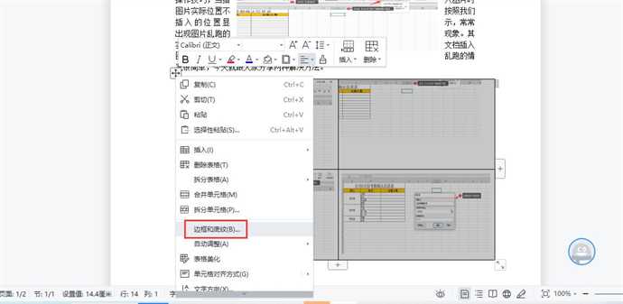 6、我们可以对表格中的图片适当调整尺寸,这时我们可以看到表格还有边框,这时我们可以选中表格,点击右键,选择【边框与底纹】,在对话框中选择“无边框”,最后确认边框就去掉了,如下图