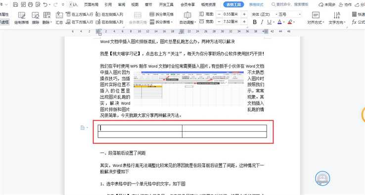 通过插入表格来定位图片的位置