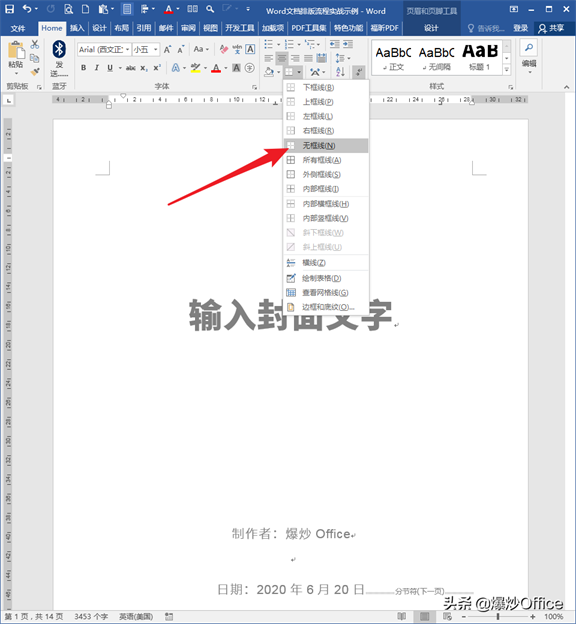 而封面页眉中的横线,可以直接删除掉。