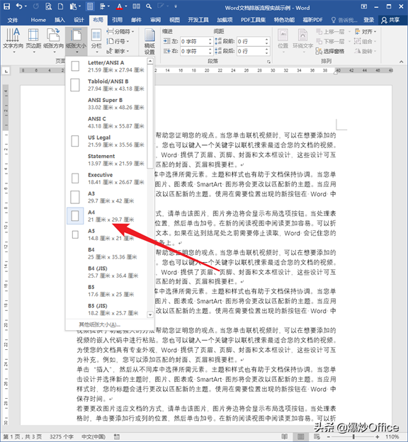 如果是办公,通常文档是需要最终打印出来的,所以需要根据自己的打印机、打印纸的客观条件,选择适宜的纸张大小。