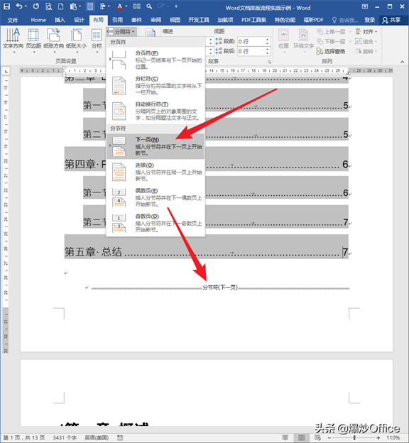 需要注意的是,插入的目录页是使用分节符插入的新页。为何这样操作?继续往下看。