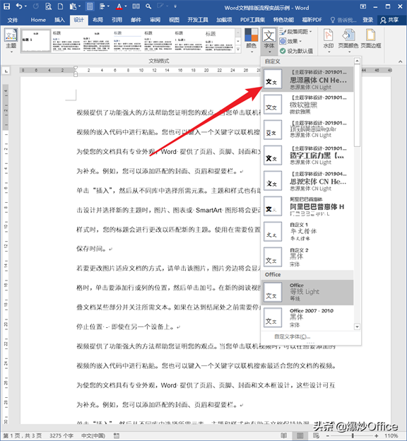 通过设置主题字体,可以一次性搞定文档中各类文字对于字体的需求,减少或杜绝设置字体的麻烦操作。