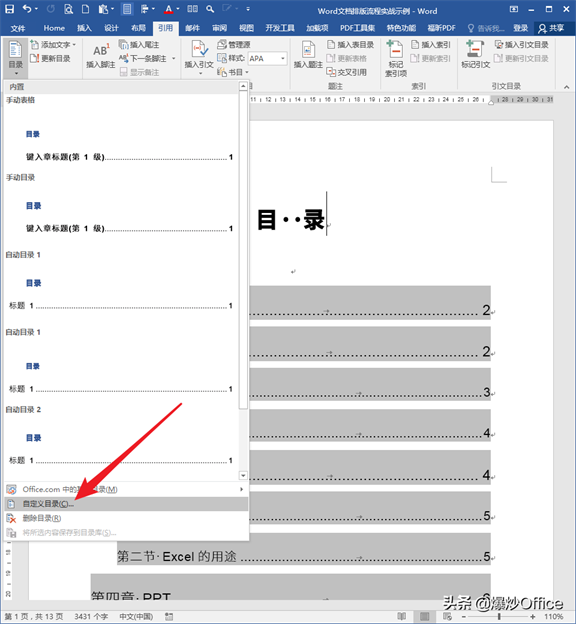 可能你会觉得奇怪,到目前为止,还没有设置页码,为什么就要添加目录了呢?继续看,后面就能得到答案。如果有需要,还可以添加题注目录。