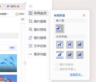 - 嵌入型:图片和文字在同一行,不能自由移动,适合简单的排版。