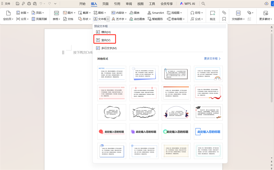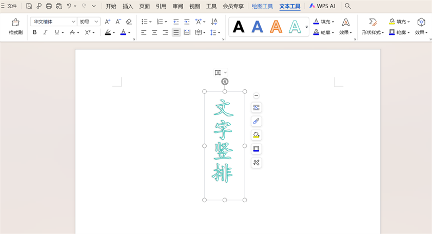 2.直接在绘制好的竖排文本框内输入所需文字,文字会自动按竖排格式显示。