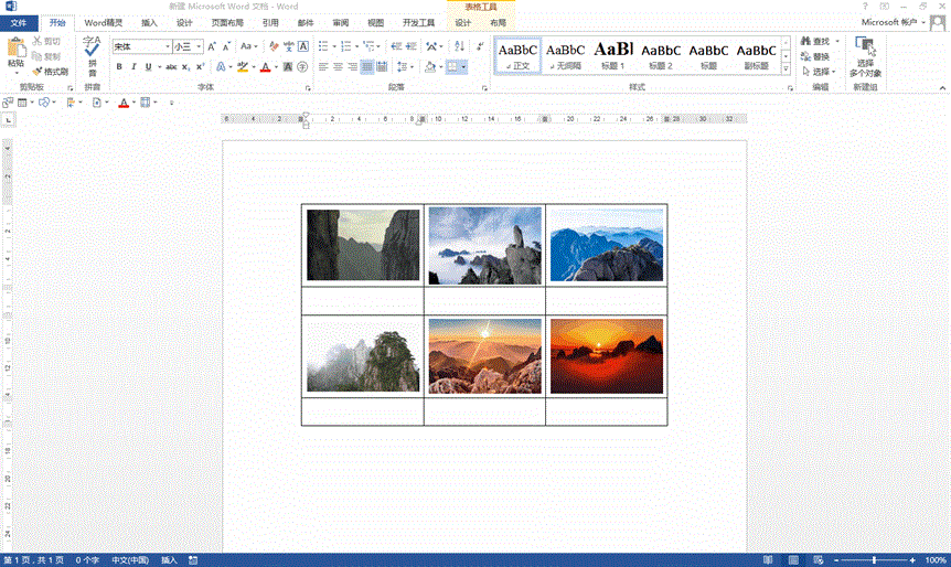 然后在图片下面一行输入备注,这里输入编号。全部输入完毕,选中整个表格,在布局中选择居中对齐,然后在设计选项卡下找到边框选项,选择“无边框”,这样整个表格就没有边框了,看上去就像是一张一张分别排列的一样,这样的操作不仅方便快捷,而且效果显著,比起手动调整不知要好多少倍了。