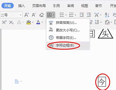 操作方法:先在文档中输入内容,之后点击“开始”——“字体”——“字符边框”