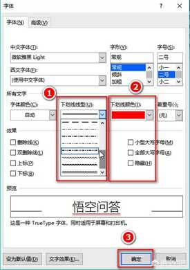 如果不设置下划线的颜色,下划线将和文字保持一样的颜色。除了双下划线,你也可以选择波浪线、虚线等。