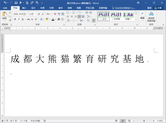 1.在文档中输入要添加超链接的文本“成都大熊猫繁育研究基地”。
