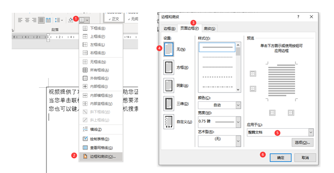 除了上面说的正文边框,word中常见的边框线有以下几种: