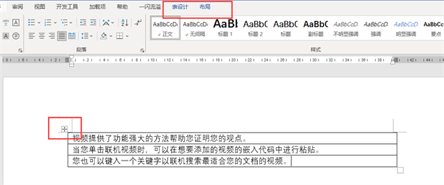 表格边框线也是常见边框线问题所在,如下图所示,不过表格线都有一个特点,当你在表格中间的时候,它在左上角会有一个明显的标志,而且在选项卡会多出两个选项 —— 表设计和布局